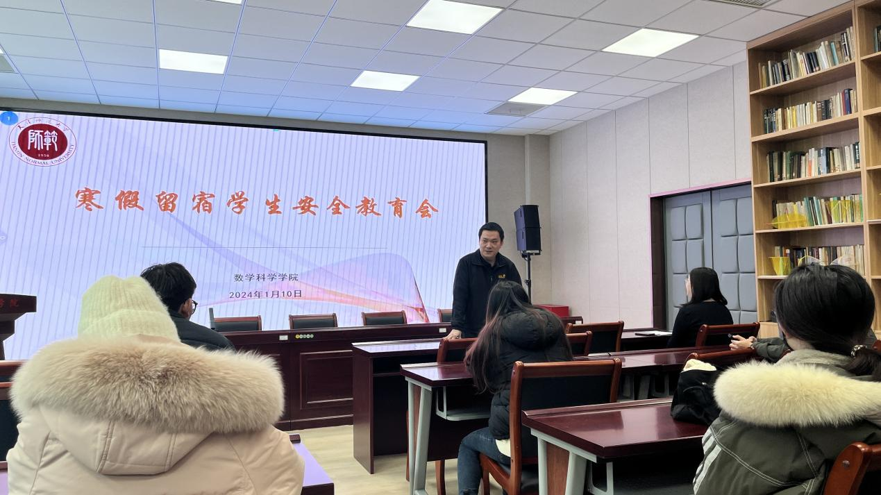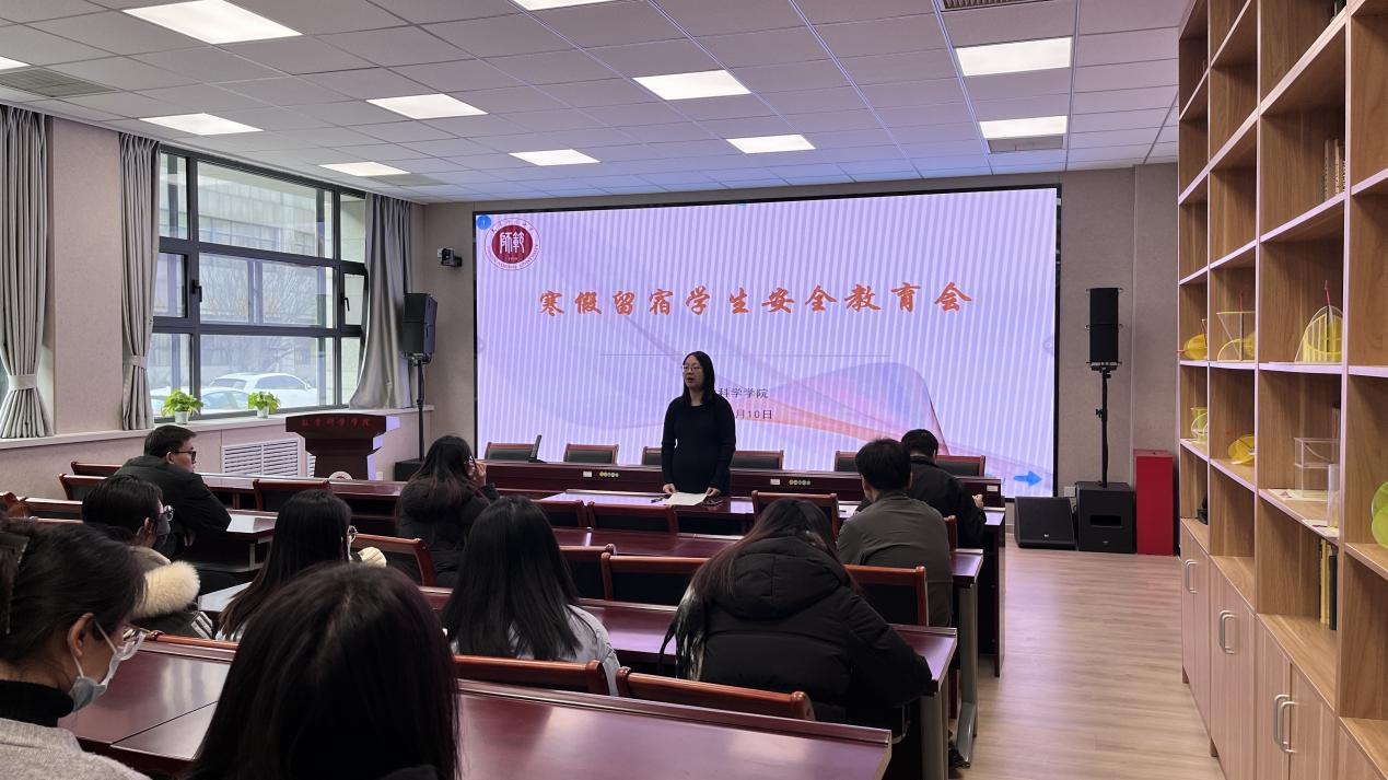 为做好寒假留宿学生的管理、服务工作,强化留宿学生安全意识,2024年1月10日,pg游戏电子模拟器召开寒假留宿学生安全教育会,学院党委副书记彭永刚、学工办主任王建君、辅导员上官萌萌出席,全体假期留宿学生参加会议。