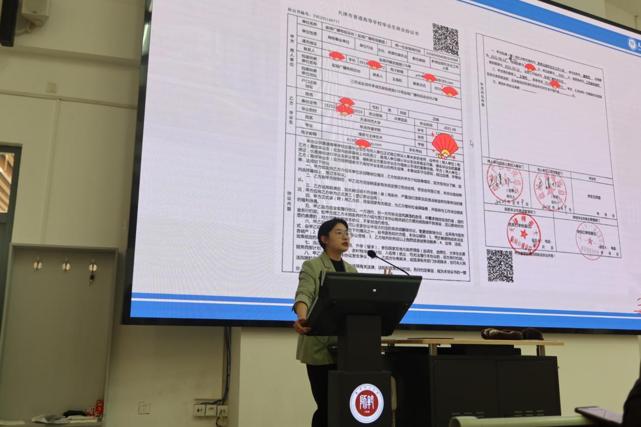 田尚慧对就业政策、去向分类、网签流程、档案转递、户籍迁移、学社衔接等重点工作进行了详细解读,从确立积极的就业思路和做好充分的求职准备两个方面鼓励学生积极把握政策机遇,拓宽职业发展路径。