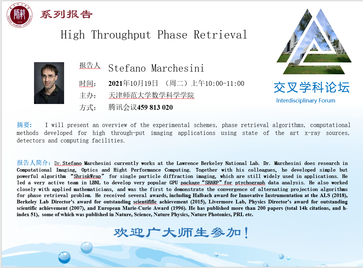【预告】学术报告(2021-22)10月19日报告——High Throughput Phase Retrieval