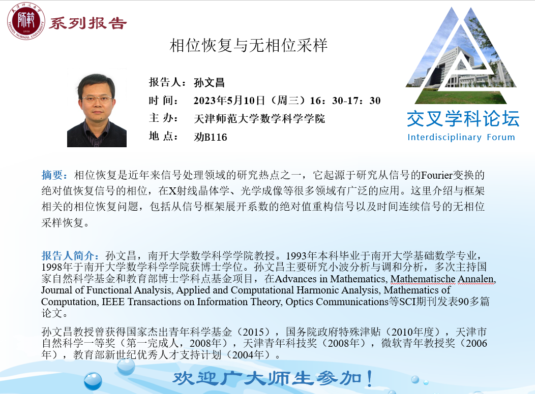 【预告】学术报告(2023-6)5月10日——相位恢复与无相位采样