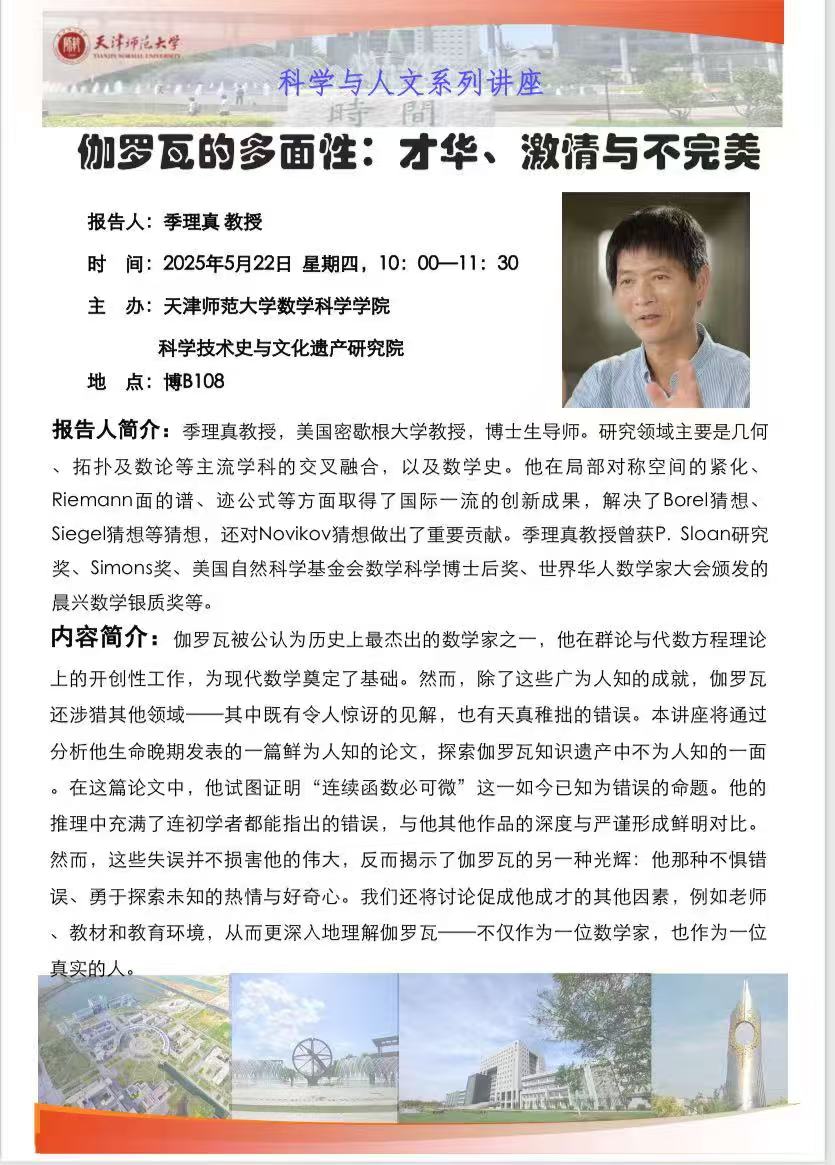【预告】学术报告(2025-19)5月22日——伽罗瓦的多面性:才华、激情与不完美