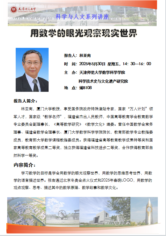 【预告】学术报告(2025-20)5月22日——用数学的眼光观察现实世界