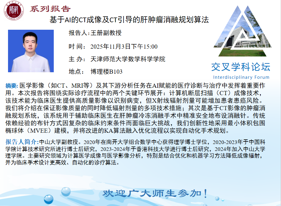 【预告】学术报告(2025-45)11月3日-基于AI的CT成像及CT引导的肝肿瘤消融规划算法