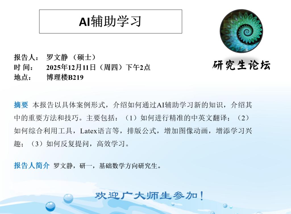 【预告】学术报告(2025-54)12月11日--AI辅助学习